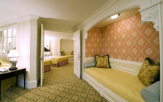 東京ディズニーランドホテルの客室で、最も多いタイプの客室です。レギュラーベッドのほかに、引き出し式のトランドルベッド、さらに、壁のくぼみにソファとしても、4台目のベッドとしてもご利用いただける「アルコーヴベッド」を設置しています。 |